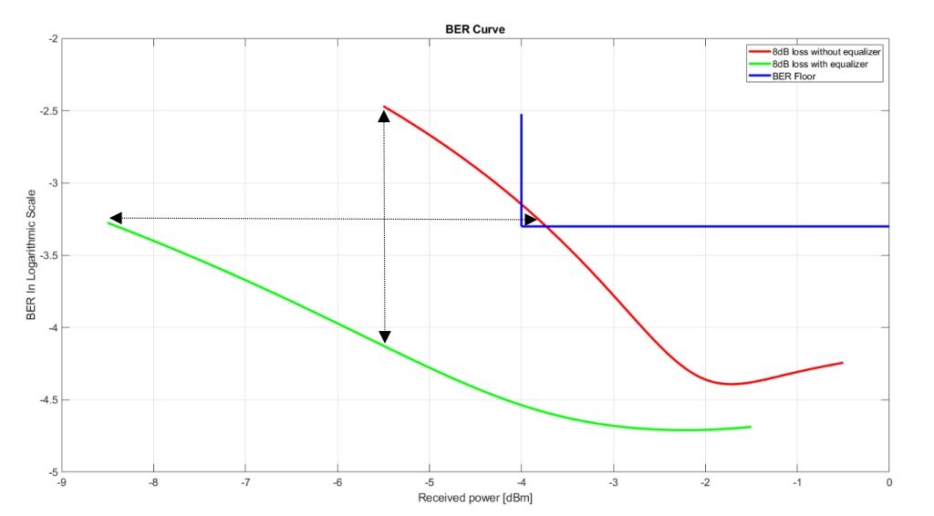 For example, measuring, Optical Modulation Amplitude (OMA), Transmitter and Dispersion Eye Closure Quaternary (TDECQ) and BER for 12dB RF loss channel performance we have shown gain at two orders of magnitude in BER as well as 5dB sensitivity improvement.